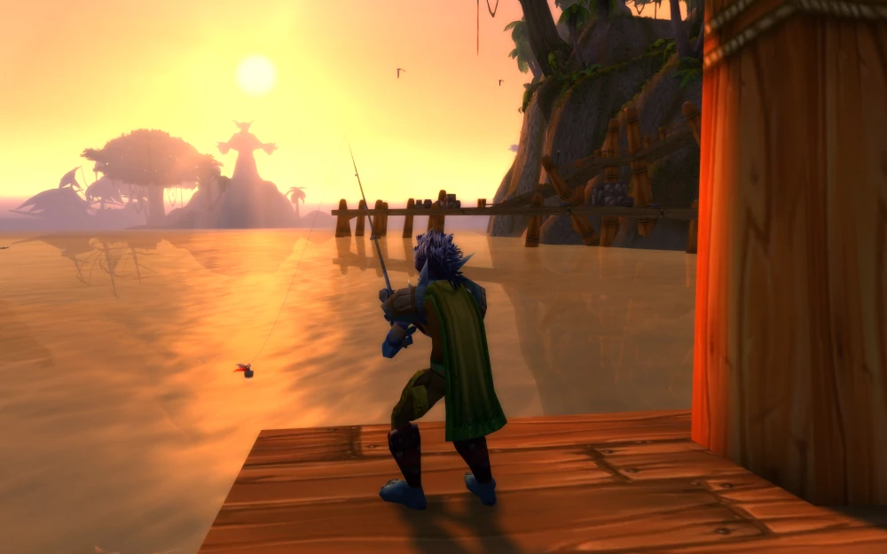 В соответствии с такой логикой, чаще всего моего синекожего тролля из клана Мерзлогривов (да, да — с полноценным бэкграундом, хоть сейчас бери и отыгрывай в РП) можно увидеть не дубасящим топором несчастных НИП (НеИгровых Персонажей; я уже начинаю жалеть, что взялся стебать эти переведённые на русский игровые аббревиатуры), а где-нибудь в укромном местечке с красивым видом, ловящим внахлыст или невнахлыст подводную фауну, медитативно подмурлыкивающим (не имеет отношения к мурлокам!) под каких-нибудь Dire Straits или Клэптона. Травничество органично дополняет пристрастие к рыбалке — что может быть романтичнее, чем забраться на заре в какие-нибудь <вырезано цензурой> и собирать цветочки, скажем, на берегу богом забытого горного озера, величиной чуть поболее тауренской тарелки?