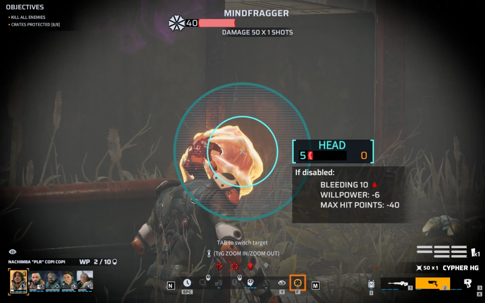 Ещё одним отличием в боевой системе является способ стрельбы, а точнее — определения шанса попадания. Если в XCOM вам радостно и незамысловано показывали процент оного, то в Phoenix Point всё значительно хитрее — у каждого оружия вполне реалистично существует зависящий от его типа круг разброса, который нам и демонстрируется при изъявлении желания пострелять.