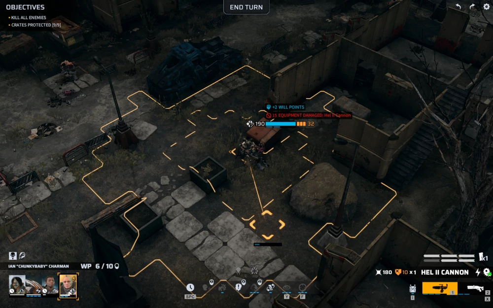 Укрытия, кстати говоря, это отдельная интересная тема. Они работают не совсем так, как в XCOM. Да, в игре присутствуют те же два вида — частичное и полное, но в отличие от предшественника, укрытие не просто уменьшает на сколько-то шанс попасть, а представляет собой именно препятствие для вражеских снарядов — то есть самый настоящий line of sight в действии!