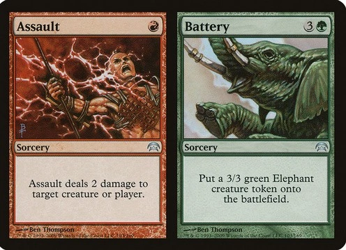 Unglued 2 благополучно канул в Лету, и похоже было, что сплит-карты обречены на вечное забвение. Однако, год спустя, во время работы над дизайном Invasion я неожиданно понял, что многоцветный блок (Блок — сочетание нескольких наборов, разделяющих одну идею, механики, атмосферу и турнирную ротацию. Multicolor block — блок, построенный вокруг идеи использования в колоде карт сразу нескольких цветов, с последующей их синергией — прим. пер.) — отличное место для презентации сплит-карт. Я показал их Bill Rose, ведущему дизайнеру Invasion, и они настолько ему понравились, что он сразу же решил добавить их в набор. Также я продемонстрировал сплит-карты Richard Garfield, и тот тоже заявил, что эта механика очень интересна. К сожалению, эти два человека были единственными в компании, кто положительно отозвался о моём детище.
