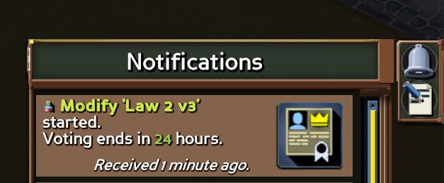 По результатам голосования, закон либо проходит, либо отклоняется. Если закон отклонён, его можно будет отредактировать и повторно выставить на голосование.