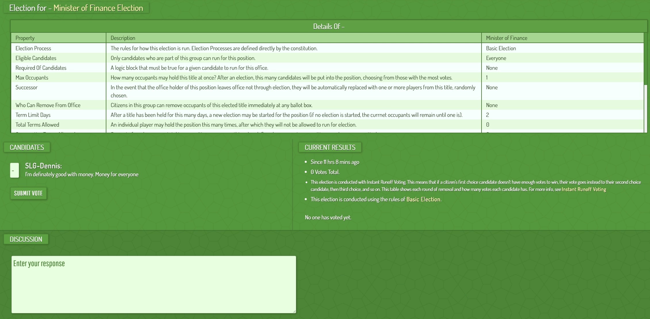 И да начнётся предвыборная гонка! Граждане могут голосовать таким же образом, как было описано выше — в урнах или вебморде сервера: