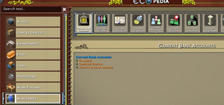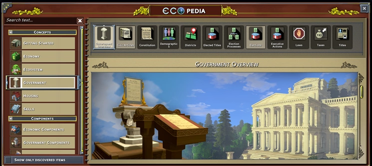 Таким образом Strange Loop Games в лице Джона К решили разнообразить информацию, рассказав вместо ожидаемых налогов и демографии про внутриигровую энциклопедию, дóлжную облегчить процесс ознакомления с существующими и особенно новыми механиками Eco.