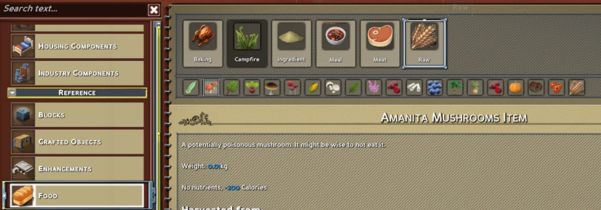 Раздел «Справочник» содержит все предметы и объекты, существующие в игре.