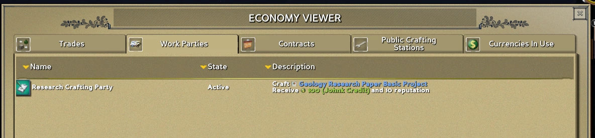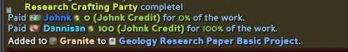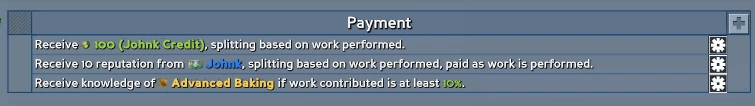 Получение знания — особенно полезно, поскольку можно будет опубликовать один контракт на создание книги профессии, и собирать на неё материалы всем поселением — а после завершения знание об этой профессии автоматически будет предоставлено всем участвующим.