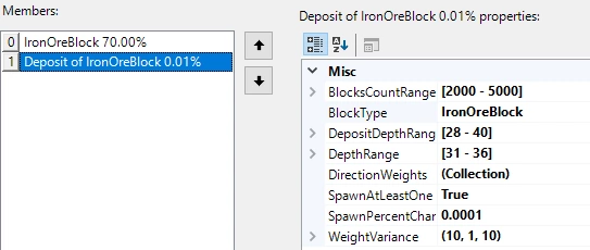 До 9.0 мы использовали механику, которая позволяла генерировать слои различных скальных пород и связывать эти слои с биомами, создавая различающиеся по составу недр участки. Но территории биомов могут быть огромными, а рудные месторождения далеко не всегда по форме соответствовали соответствующим слоям. Чтобы побороться с этим, мы создали новый модуль процедурного генератора, занимающийся исключительно месторождениями:
