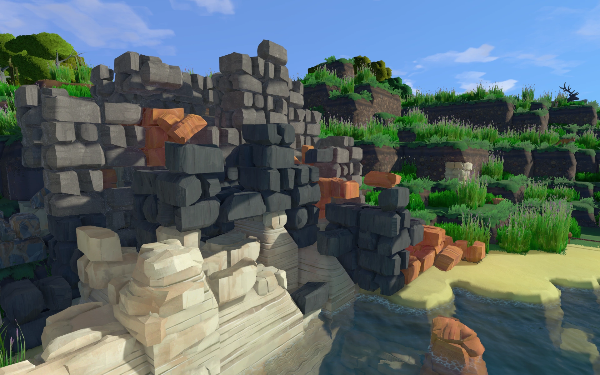 Похоже, что судьба свела меня с довольно опытными людьми — по крайней мере, поселение разрасталось, как на дрожжах — от жалких бревенчатых хибар до вполне приятных глазу каменных строений. Вопреки моим опасениям, остров не превратился в первые же дни в вытоптанную пустыню — удовлетворив начальные потребности в древесине и продуктах, люди подуспокоились и начали применять более централизованный подход к потреблению.