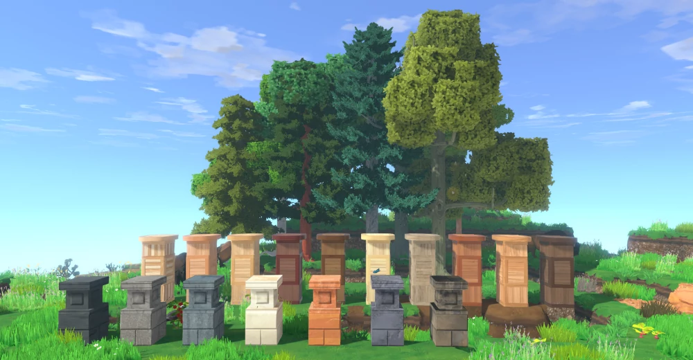 Если главным приоритетом при дизайне механик строительства была возможность самовыражения игроков, то вторым по важности — необходимость донесения мысли о том, что ресурсы, используемые для строительства, конечны. Поэтому в 9.0 мы, продолжая курс расширения системы биомов, заданный в 8.0, решили сосредоточиться на тех строительных материалах, которые получаются непосредственно из окружающей среды.