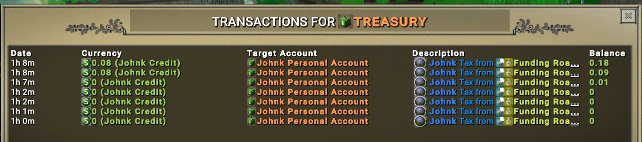 Всплывающее уведомление покажет вам размер налога, взимаемый каждый «тик» вождения. Кроме того, это можно посмотреть в окне с информацией о казне: