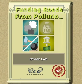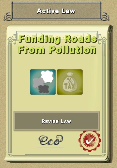 Обратите внимание на иконки рядом с законом, по которым легко понять, о чём идёт речь внутри (загрязнение + налог). После принятия закона поездка на дымящем транспортном средстве будет медленно, но верно перекачивать ваши деньги в казну: