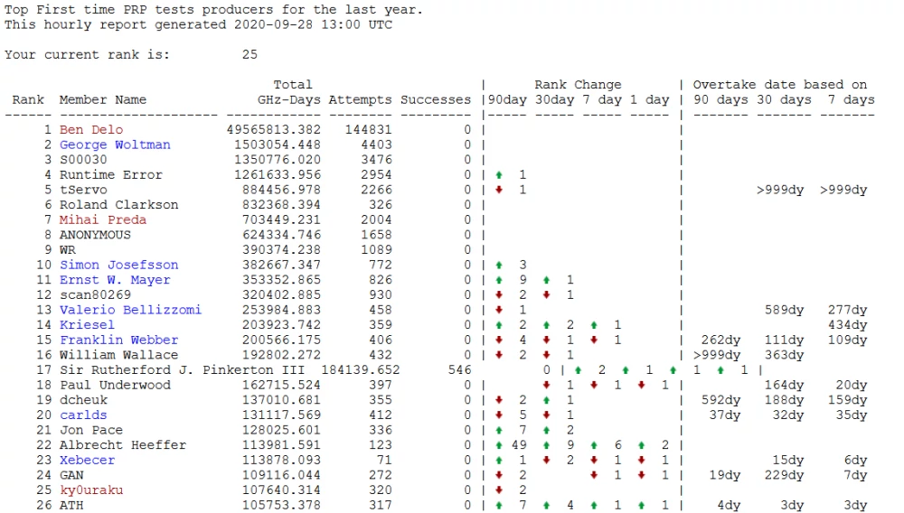 Но не алгоритмами едиными. Самое важное, как и в любой коллективной деятельности — это люди. Те самые, которые приближают глобальное потепление, сутками напролёт гоняя многочисленные компьютеры и серверы. Учёные, в том числе всемирно-известные математики, блестящие программисты, выжимающие всю мощь из видеокарт, и обычные, незаметные, но важные винтики проекта — энтузиасты, мало-помалу, экспонента за экспонентой, грызущие этот бесконечный кусок гранита. Правда, энтузиаст энтузиасту рознь — недавно, например, число гимпсовцев пополнил замечательный человек, миллиардер, филантроп… нет, не Тони Старк, но где-то рядом — Бен Дело, выделивший кусочек своих миллиардов на аренду десятка-другого серверных стоек и стремительно вырвавшийся в лидеры по выполняемой работе (ваш покорный слуга, кстати, занимает там лишь скромное 25-ое место):