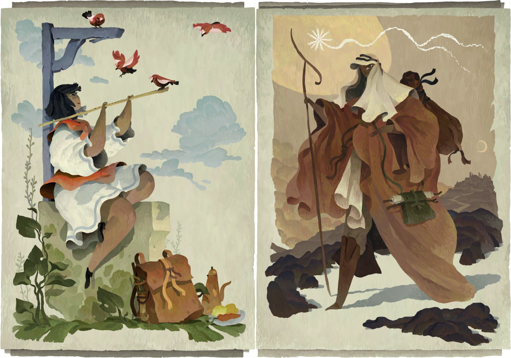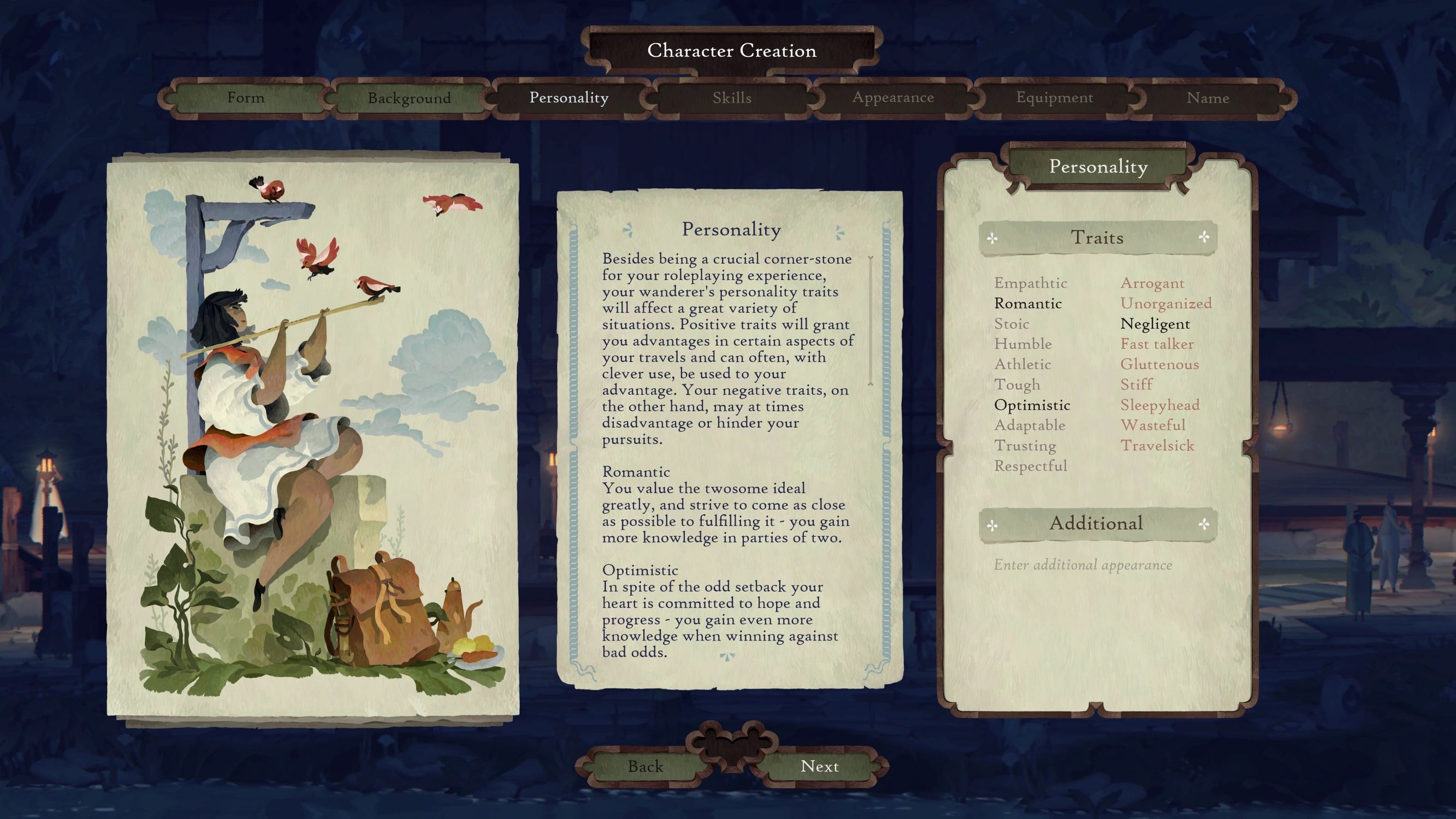 Если вы уже посмотрели последнее геймплейное видео, то наверняка обратили внимание на то, как много времени наш креативный директор Джейкоб уделил тому, чтобы рассказать о создании персонажа. Этот процесс, без сомнения — очень важная часть духа Book of Travels, и мы надеемся, что вы как следует углубитесь в него прежде, чем устремиться навстречу приключениям.