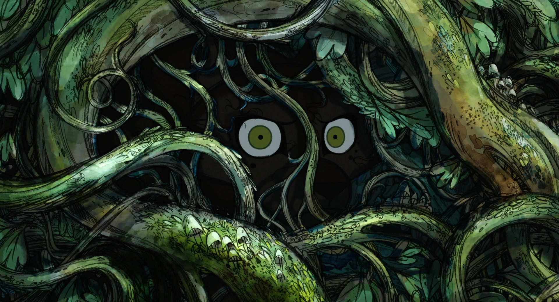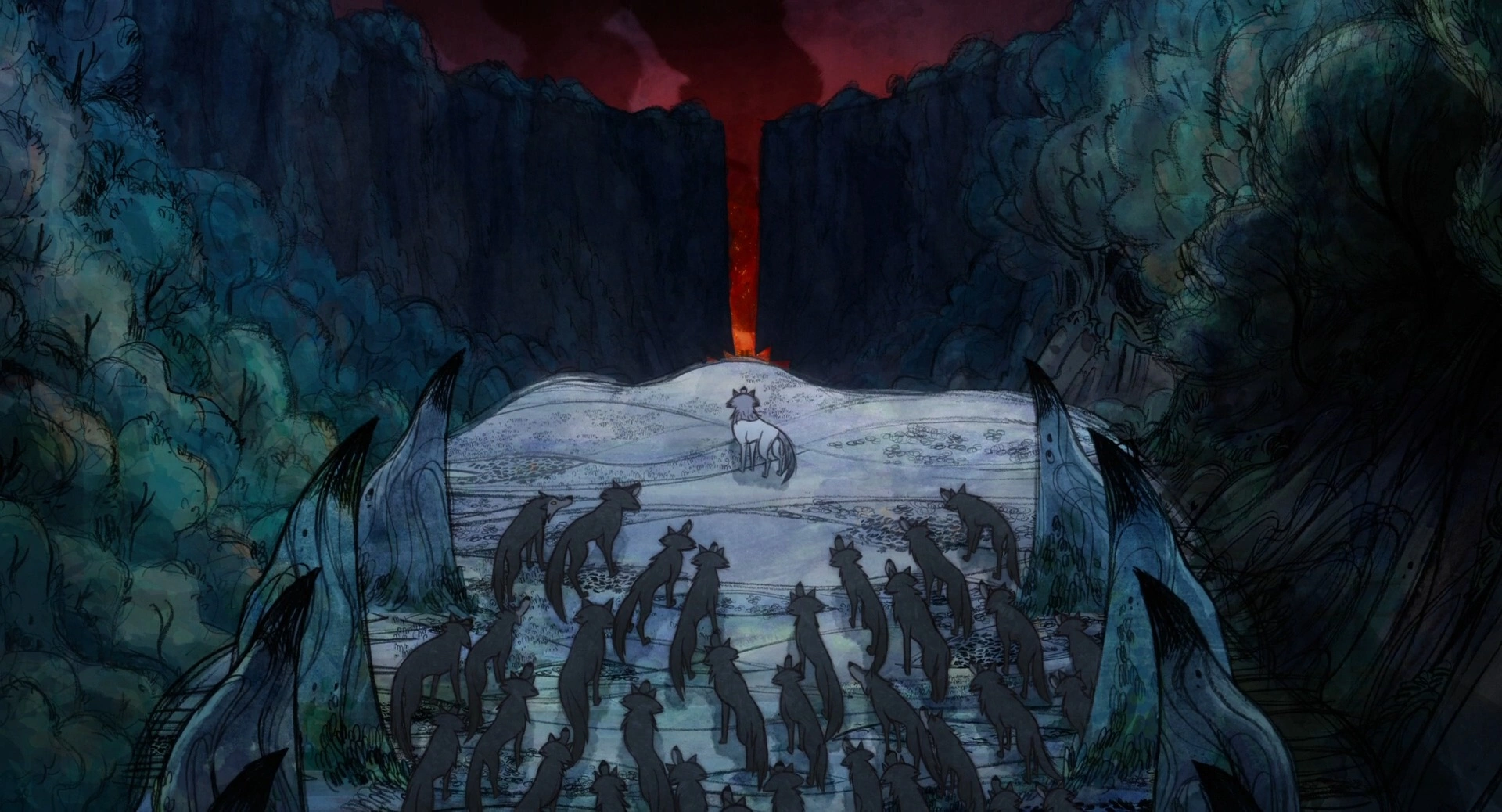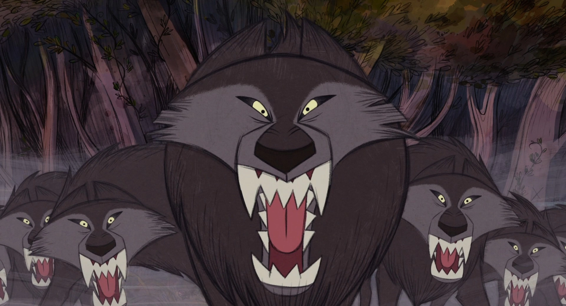 Что могу сказать? Мультипликация традиционно на высоте и выглядит совершенно сногсшибательно - все эти переплетения веточек, изгибы волчьих тел и замысловатые узоры. Техника отличается от "Тайн аббатства", представляя собой скорее нарочито небрежные карандашные штрихи, чем чёткие линии у предшественника. Очень красиво, с этим спорить совершенно бессмысленно.