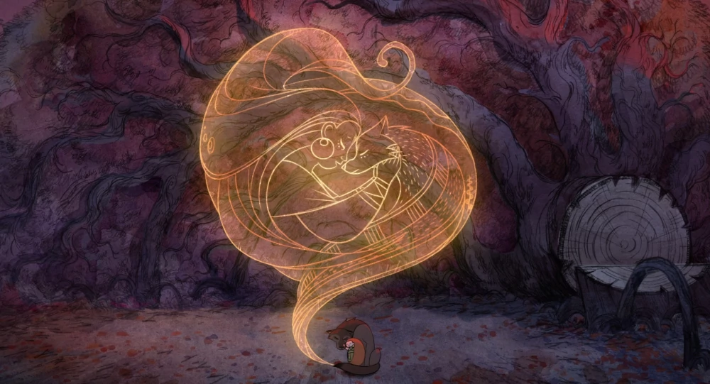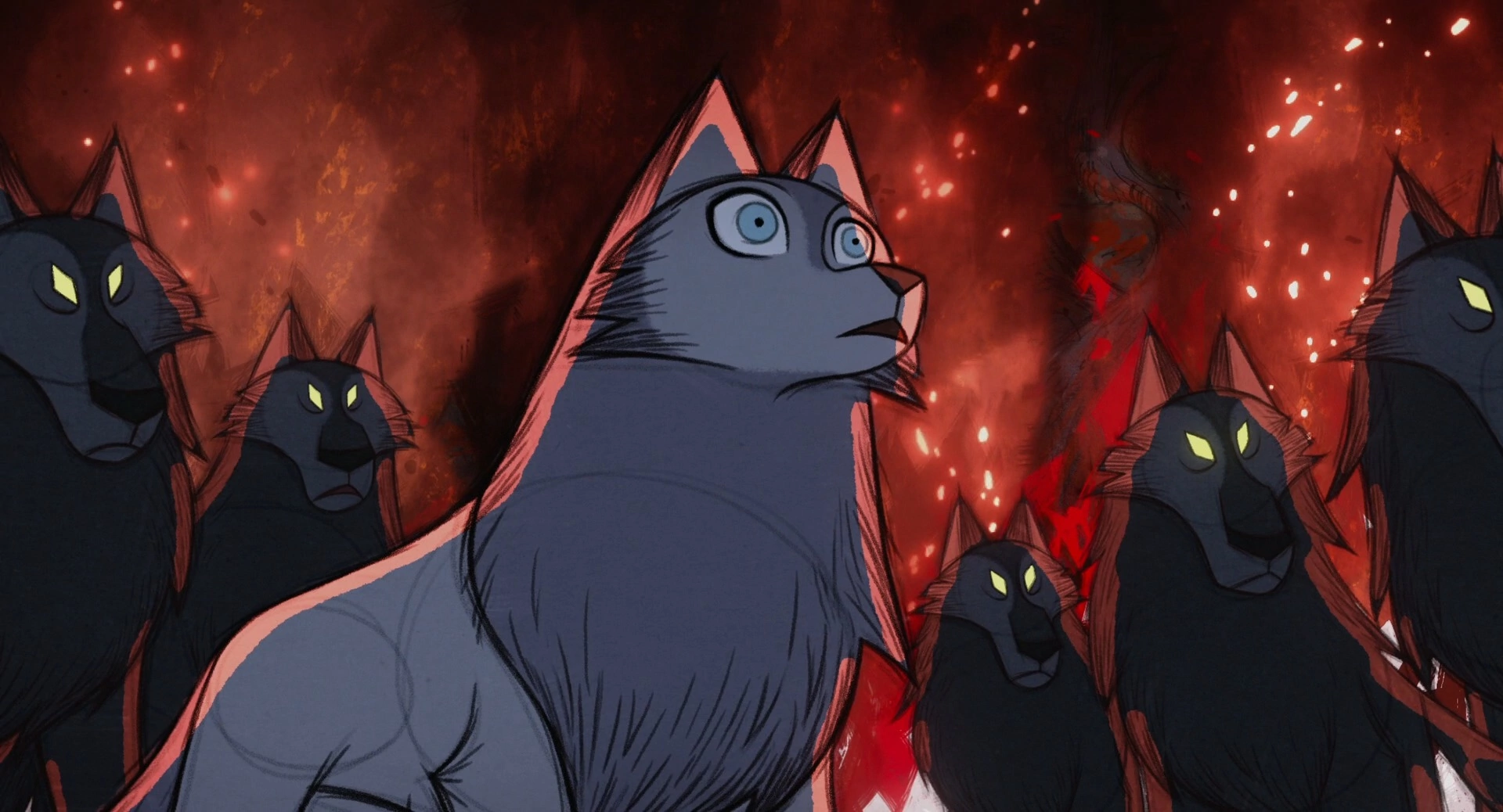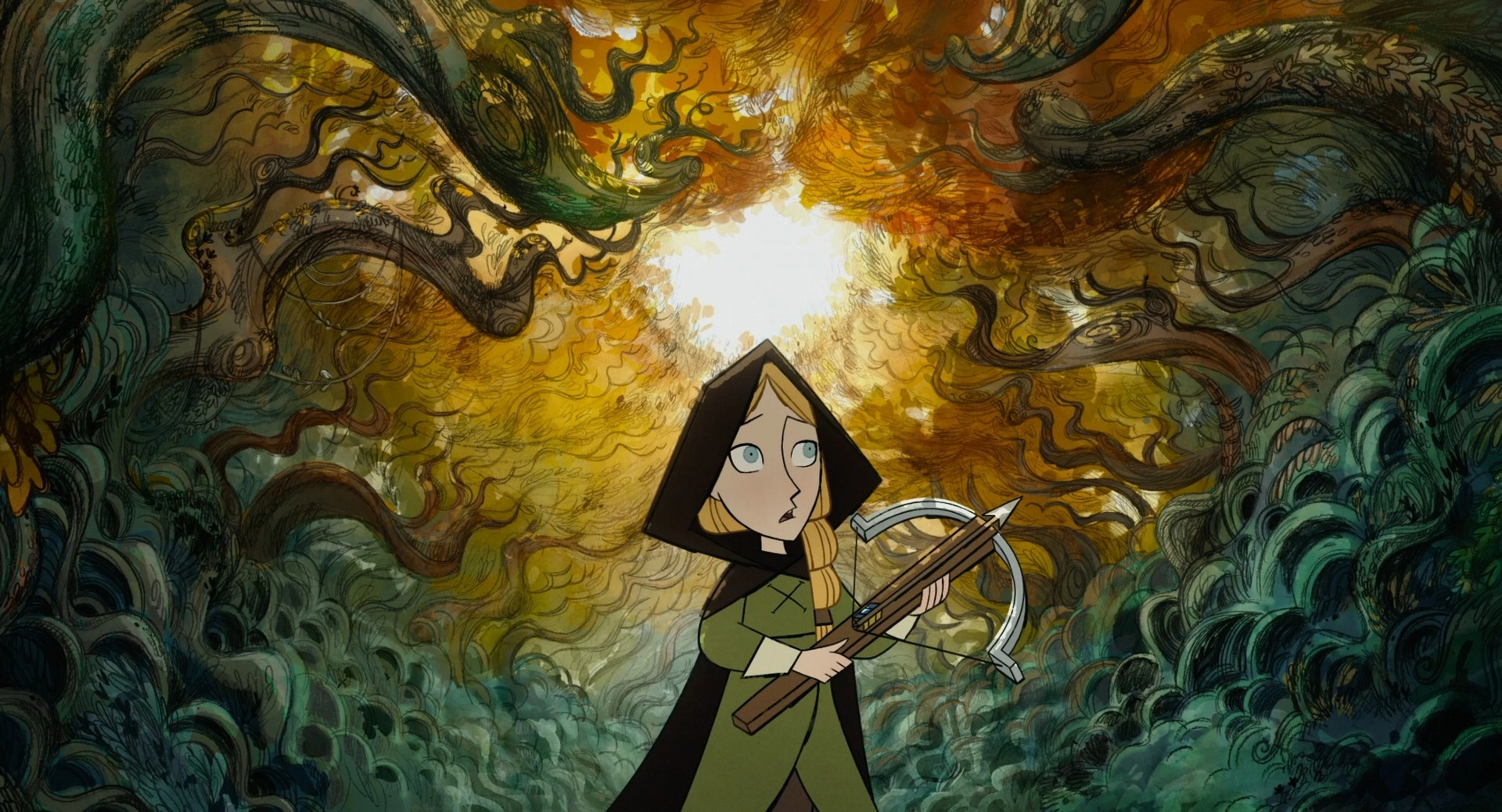 Что могу сказать? Мультипликация традиционно на высоте и выглядит совершенно сногсшибательно - все эти переплетения веточек, изгибы волчьих тел и замысловатые узоры. Техника отличается от "Тайн аббатства", представляя собой скорее нарочито небрежные карандашные штрихи, чем чёткие линии у предшественника. Очень красиво, с этим спорить совершенно бессмысленно.