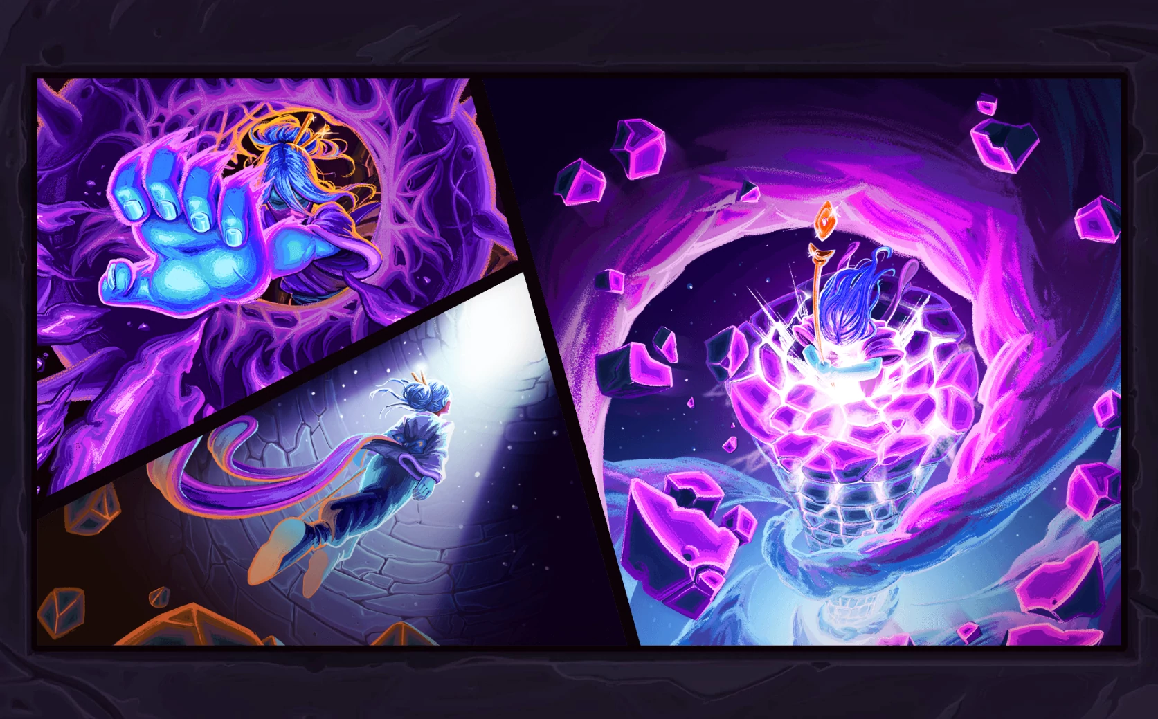 Вместо этого, божественность достигается другим методом - с помощью механики мантр. Мантры - это очки эзотерической энергии, накапливаемые разными способами - с помощью пассивного навыка или игры определённых карт. Так или иначе, при достижении десяти, мантры сгорают, а персонаж тут же переходит в фиолетовую божественную стойку. Здесь существует важный нюанс, связанный с её недолговечностью - накопив не вовремя мантры, вы рискуете просто-напросто потратить их зря, важно чёткое планирование момента.