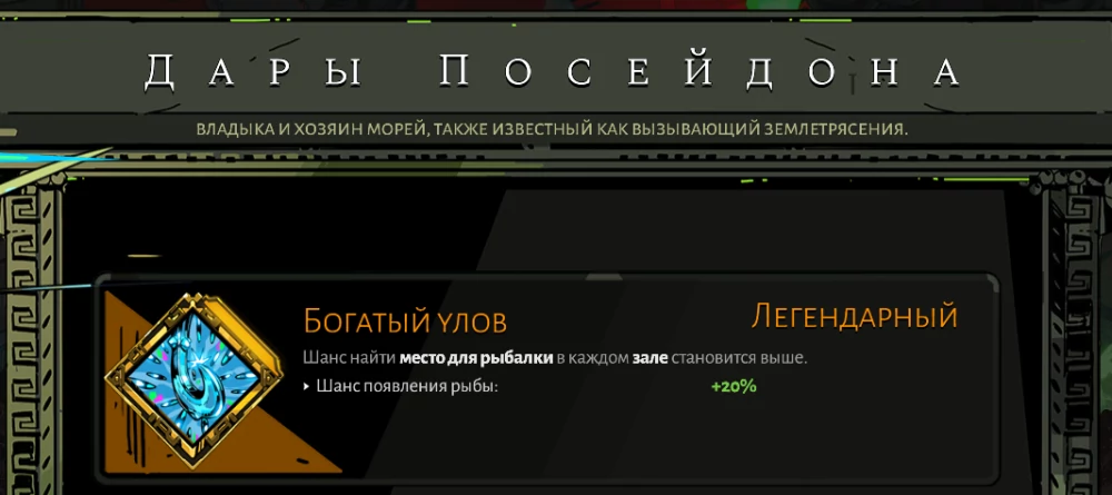 Так вот, возвращаясь к "покрутению". За прохождение каждого зала выдают честно заработанную награду. В существенной доле случаев это, барабанная дробь - дар одного из многочисленных родственничков с Олимпа, заинтересовавшихся вашими похождениями и предлагающих небольшую помощь в соответствии со своей, как бы это сказать... специализацией.
