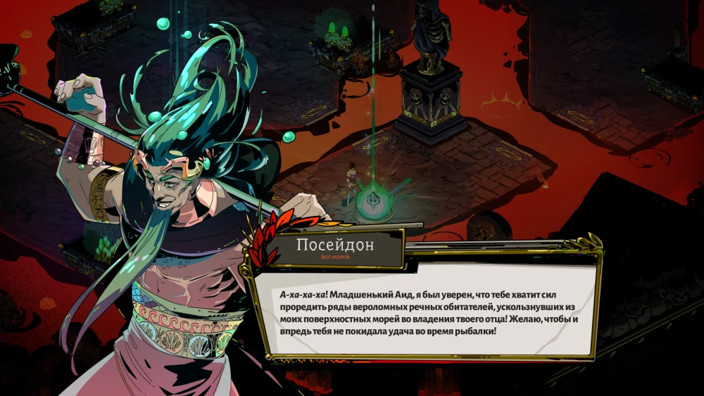 Но есть и хорошая новость - по сравнению с героями мифов, вы не ограничены одной попыткой. Вы же не абы кто, а целый бог, пусть и юный! А значит, что? Правильно - умереть не можете в принципе. Не то чтобы это значило, что у вас есть личный IDDQD, но, получив ранения, несовместимые с нормальным функционированием организма, вы попросту растворяетесь в багровых водах Стикса, а затем - возрождаетесь таким же атлетичным и свежепобритым, как были.
