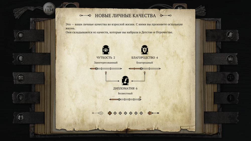 Усугубляет ваши собственные проблемы шаткое положение вещей в империи - напряжённость присутствует совершенно в любой сфере, от политики до религии. И хотите вы этого или не хотите - по мере взросления вы будете втянуты в круговорот всё более глобальных конфликтов, как и подобает главному герою исторического романа. В каком качестве вы выступите: благородного сеньора, ревностного служителя церкви или (разумеется, не совсем) обычного простолюдина - зависит исключительно от ваших решений, начиная с первых детских шагов.