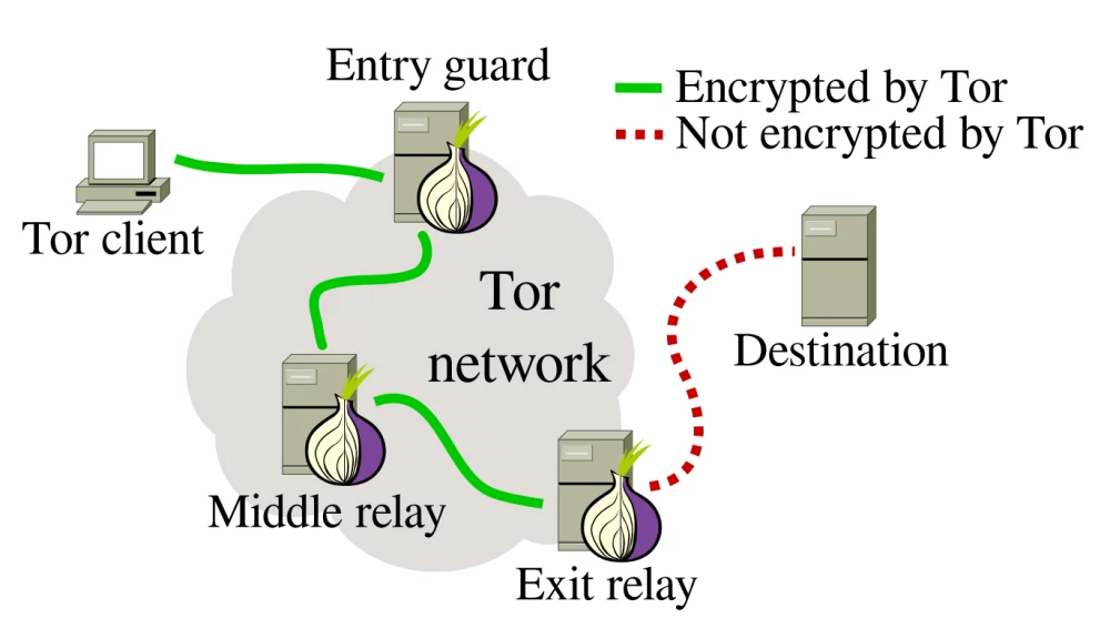 Вторая особенность заключается в том, что ваши данные, передаваемые через Tor, несколько раз шифруются, для каждой ноды своим ключом. Делается это для того, чтобы промежуточные узлы не обладали полной информацией о том, кто, что и куда передаёт.