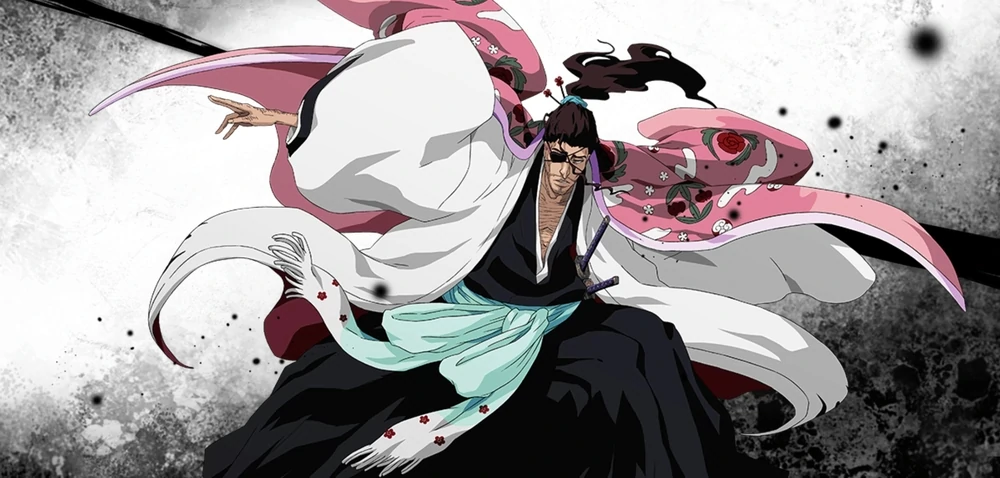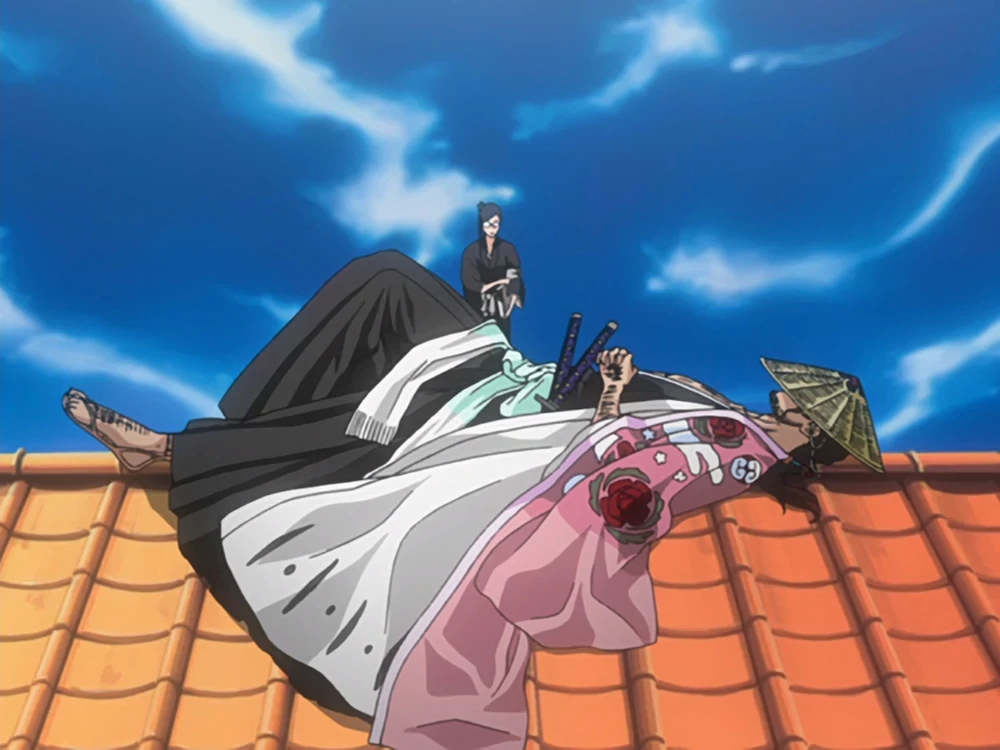 Строгую монохромность хаори дерзко разбавляет весёленькое розовое кимоно с цветочками. Кто же этот небритый гедонист в соломенной шляпе, покоривший моё сердечко с первого взгляда? Ответ очевиден - это 京楽 次郎 総蔵佐 春水, или Kyōraku no Jirō Sakuranosuke Shunsui. Транскрибирование оставлю на ваше усмотрение, но факт остаётся фактом - вот уже полтора десятка лет я бессовестным образом пользуюсь этим именем в качестве ника - ky0uraku.