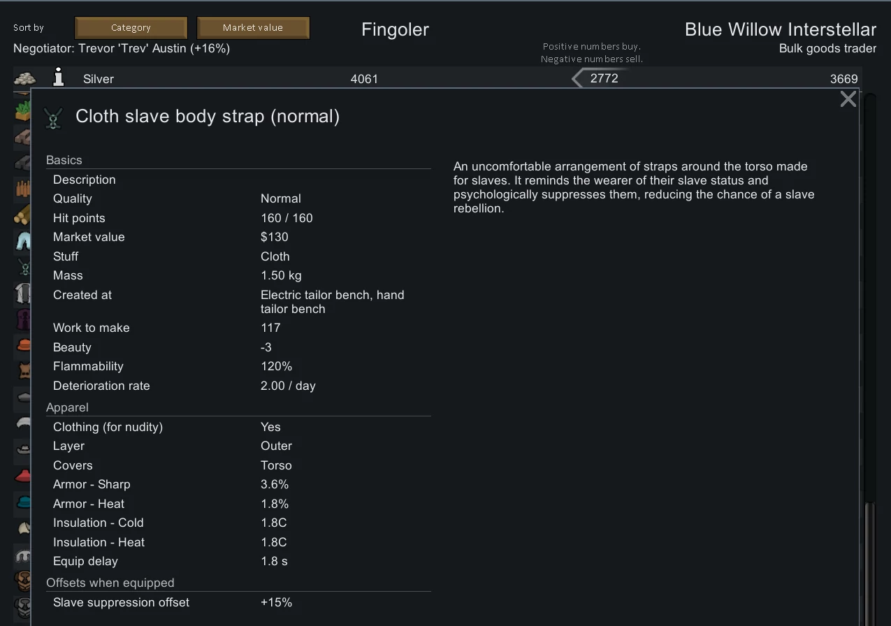 RimWorld Ideology радует нас новым витком механик, плюющих на табу - в этот раз рабовладением. Если раньше пленников можно было уговорить присоединиться к колонии полноправным участником, продать торговцу или разобрать на органы (нет, Graveyard Keeper, я тебя не забыл!), то сейчас добавилась новая возможность - забив на приседания с уговорами, можно быстро и безболезненно сделать из заключённого раба. Он, как и обычный колонист, сможет выполнять большую часть работы, хоть и с уменьшеной производительностью. Особенно полезно это, если выбранная вами идеология не то что одобряет рабовладение, но и требует оного. Рабы вполне могут взбунтоваться и сбежать, если их регулярно не прищучивать. Поэтому - надо прищучивать, в том числе используя различного рода деморализующие штуки типа страшных статуй, клеток со скелетами и специальных одёжек в стиле садо-мазо.