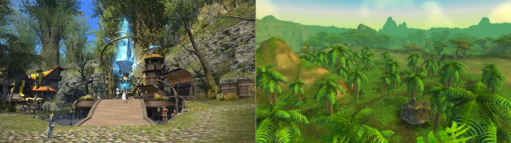 Первое впечатление от мира после просмотра морально истощающих своей длиной катсцен (привыкайте к этому, если что) - "как-то блекловато". Чуть позже я понял, в чём было дело и поменял мнение на противоположное - "ура, блекловато!". А дело в том, что ваш покорный слуга, как и многие другим ММО-игруны, подсознательно привык к кислотному буйству красок WoW`а - и подсознательно принял это буйство за норму. У японцев же хватило вкуса не повторять взрыв на фабрике гуаши, и, смотрите, что получилось: