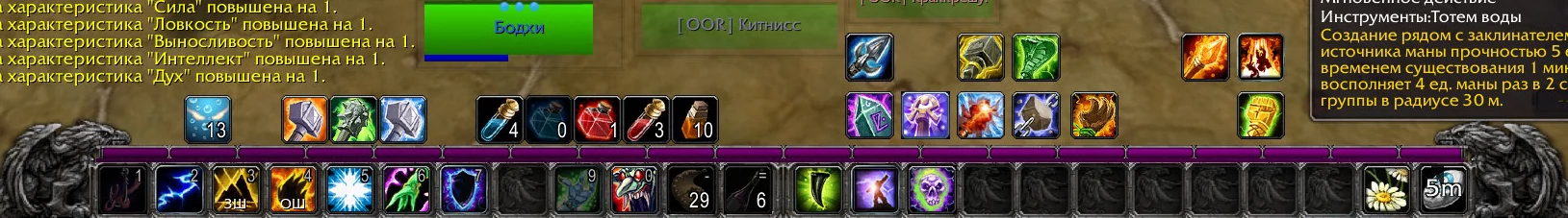 Три вида энчанта оружия, одиннадцать разных тотемов, четыре атакующих заклинания, не считая всякой мелочи типа расовых способностей и диспеллов...