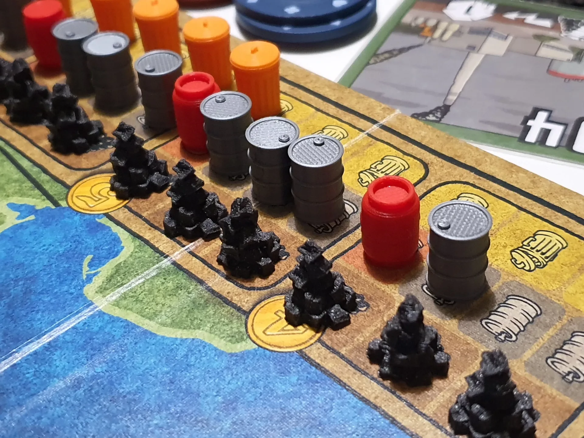 Пожалуй, самый элегантный пример механики настоящего свободного рынка, основанной на реальных ресурсах и ценах, можно найти в Power Grid (локализована на русский язык под названием "Энергосеть" — прим. пер.), ещё одной настольной игре в немецком стиле. В ней игроки снабжают свои электростанции различными ресурсами (нефть, уголь, ядерное и биотопливо), которые приобретаются на общем рынке. Ресурсы расставляются в линию, с постепенным увеличением цен. Каждый ход на рынок добавляется несколько единиц каждого ресурса, и игроки могут купить какие-то из них. По мере того, как объём предложения увеличивается или уменьшается, цена соответственно падает и растёт, в зависимости от того, на каком сегменте поля находится следующая доступная фишка ресурса.