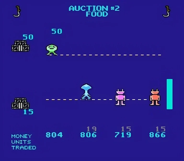 В игре имеется замечательный интерфейс, облегчающий торговлю между игроками. Фигурки покупателей располагаются вдоль нижнего края экрана, а продавцы — наверху. Увеличивая предлагаемую за товар цену, покупатели постепенно поднимаются вверх по экрану. Продавцы же, напротив, идут вниз, снижая цену своих товаров. Когда те и другие встречаются посередине, происходит сделка. Опять же, механика понятна и прозрачна: запасы игроков и рыночные цены всем хорошо видны. Игроки понимают, что им придётся либо скорректировать стоимость, чтобы сделка состоялась, либо надеяться, что их контрагенты уступят. Зная, насколько отчаянно может нуждаться другой игрок в энергии, необходимой для питания его сооружений, или еды, необходимой для работников, искушение вытянуть из него последнюю копейку очень велико. Цены имеют тенденцию падать только в том случае, если игрок опасается, что кто-то другой может неожиданно обойти его и получить прибыль! Эта игровая механика, впервые представленная в M.U.L.E, глубока и интересна. Обесточивать производства своих противников, например, может быть так же весело, как и уничтожать их грубой силой.