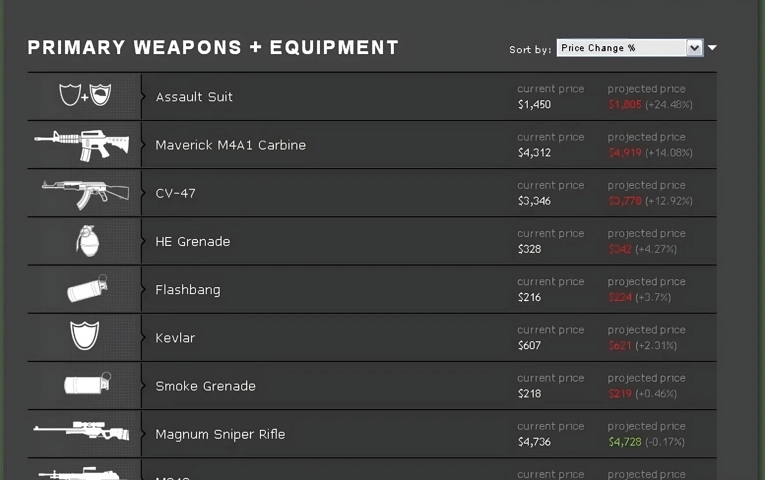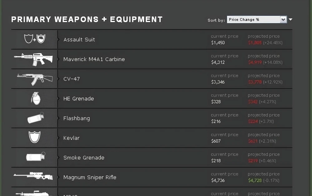 К сожалению, подавляющая популярность некоторых видов оружия превзошла способность алгоритма сбалансировать игру. Например, в то время как очень эффективный Desert Eagle подскочил в цене до 16 000 долларов, менее полезный Glock в какой-то момент достиг уровня 1 доллара; это иногда использовалось игроками для покупки огромного их количества, что приводило к тормозам или даже крэшу сервера. Игровая экономика — это не реальная экономика; не всё можно сбалансировать, просто изменив цену. Основная цель геймеров — интересное времяпрепровождение, и если «стоимость» желаемого варианта развития будет постоянно повышаться, в какой-то момент игроки вместо того, чтобы подчиниться этому, просто уйдут в другую игру. Нынешняя цена на углеводороды, возможно, делает нашу реальную жизнь «не особенно интересной», но в реальном мире существует только одна экономика, не оставляющая нам выбора. Геймеры же находятся совсем в другой ситуации.